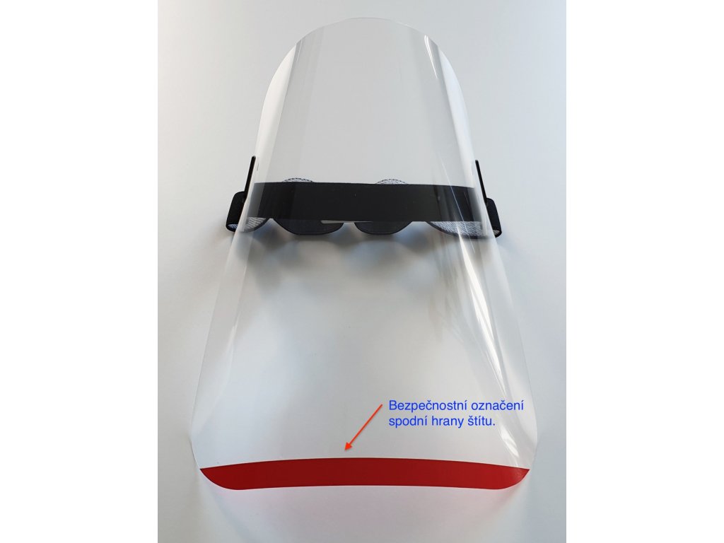 - Před nasazením štítu je třeba štít řádně desinfikovat buď desinfekcí nebo isopropylalkoholem.